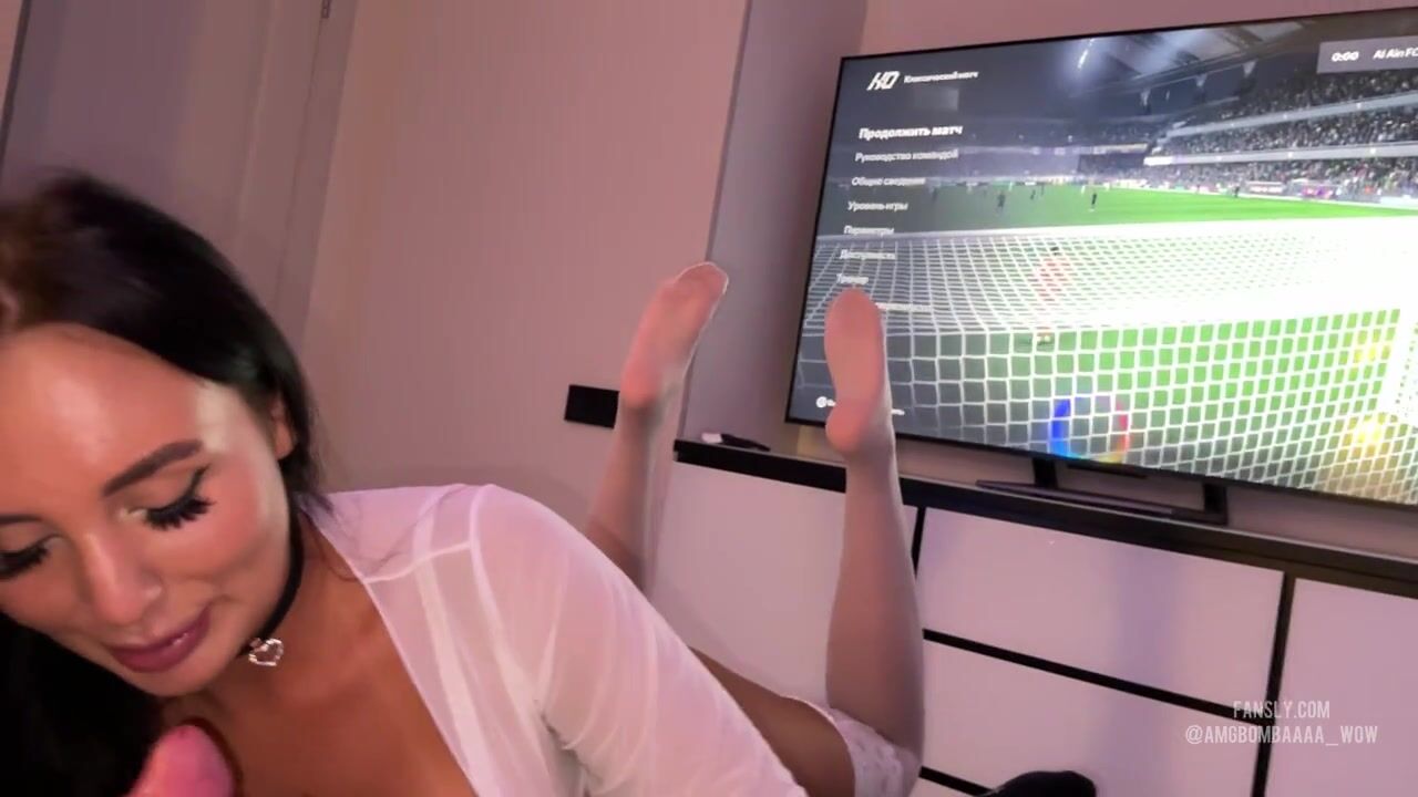 Друг мужа играл в ПСку, и тут вдруг заходит его жена и предлагает секс, парень долго отнекивался, пока молоденькая брюнетка не начала делать ему минет, и здесь он уже не смог ей отказать, и наказал в ее сладкие дырочки.