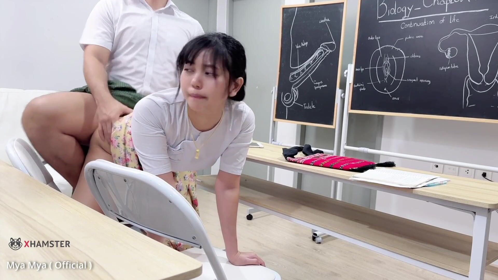 Горячая азиатская училка (Teacher) сходит с ума от похоти прямо в классе! Её мокрая пизда требует большого хуя, и она соблазняет студента. Жёсткий секс на парте, глубокий минет и стоны, пока сперма заливает её сочную жопу. Смотри, как эта шлюшка кончает!